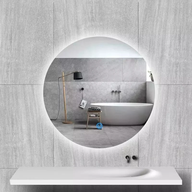 Heim / Produkt / Badezimmerspiegel / Home Rahmenloser, runder, hintergrundbeleuchteter LED-beleuchteter Badezimmerspiegel, dekorativer Badezimmer-Wandspiegel